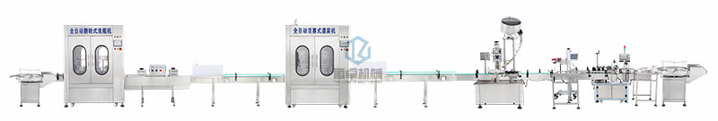 1.全自動生產線流程:人工把瓶放到送瓶轉盤上-自動洗瓶-自動高溫烘干殺菌-人工燈檢-自動灌裝-自動理蓋下蓋-自動鎖蓋-自動打碼-自動貼標-人工收瓶