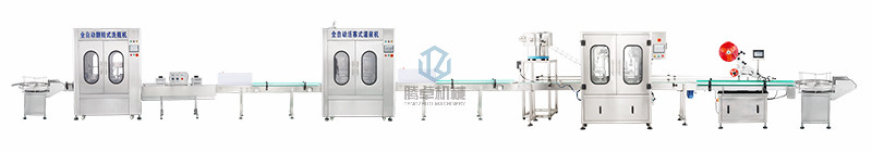 1.全自動生產線流程:人工把瓶放到送瓶轉盤上-自動洗瓶-自動高溫烘干殺菌-人工燈檢-自動灌裝-自動理蓋下蓋-自動旋蓋-自動打碼-自動貼標-人工收瓶
