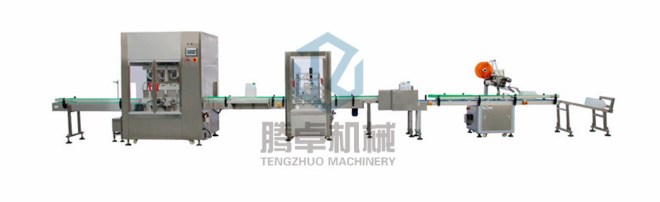 完成動作:人工放瓶-自動稱重灌裝-人工放塞放蓋(可選自動理蓋放蓋)-自動旋蓋-自動推倒產品-自動貼標-人工收瓶
