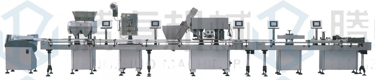 本線可對片劑(包括異形片)、硬膠囊、軟膠囊(各種形狀,透明、不透明)、丸劑,顆粒,豆類等進行計數分裝灌裝。可與理瓶機、塞紙機。塞干燥劑機、旋蓋機、電磁鋁箔封口機、不干膠貼標機組成全自動生產線。完全符合GMP認證要求,廣泛用于醫藥、食品、化工等行業。